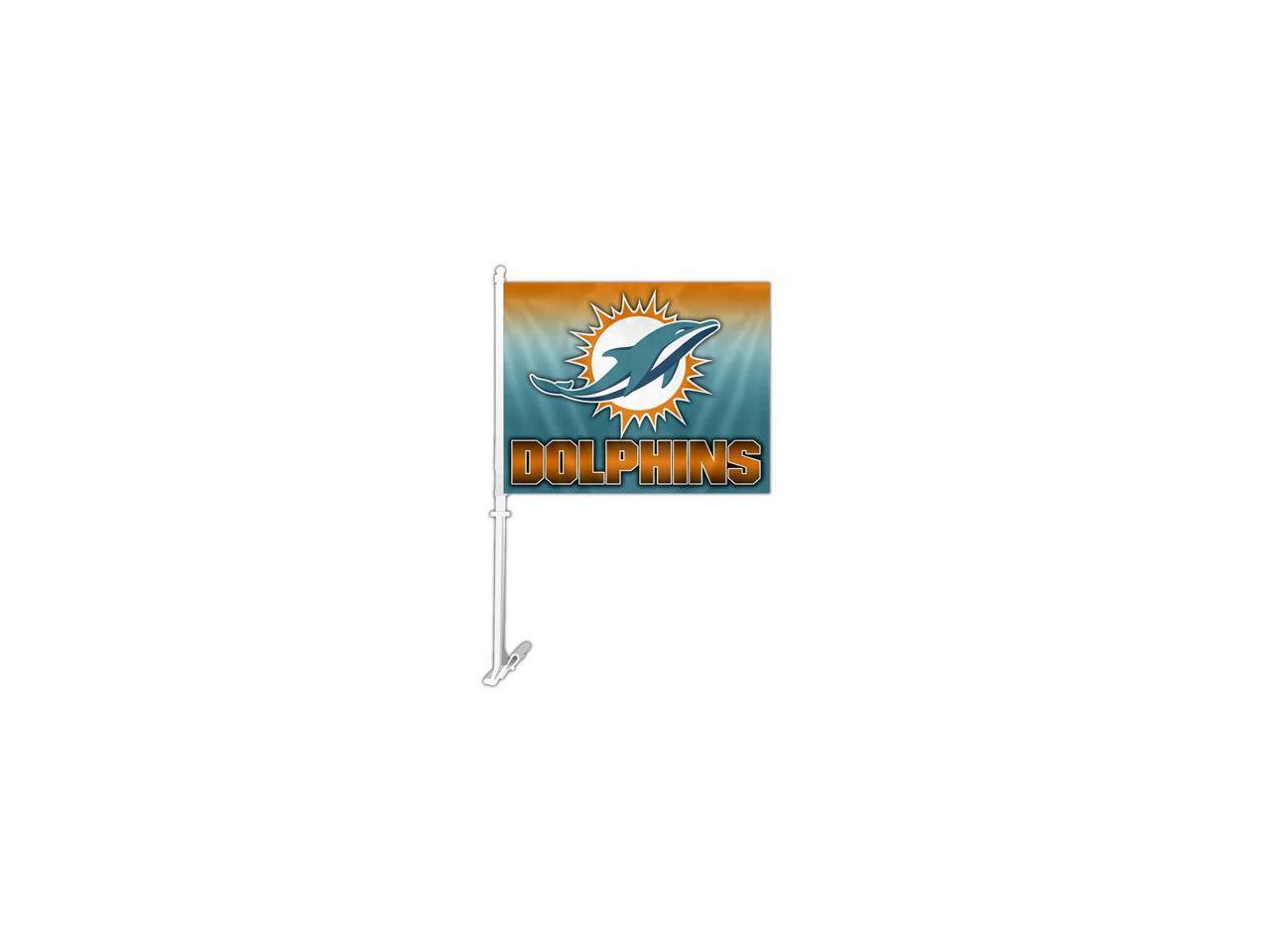 Fremont Die Inc Miami Dolphins Car Flag With Wall Brackett Car Flag