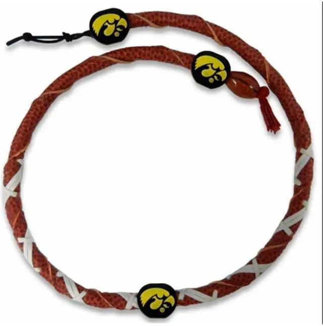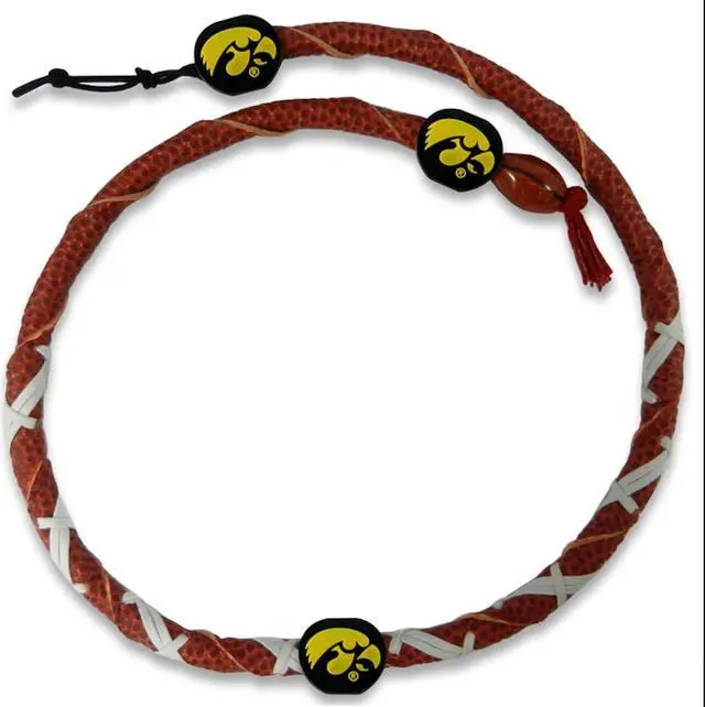 GameWear’s Spiral Football Necklace is made from genuine football leather. The football leather is twisted to create a unique style of necklace which features the laces found on a football along with three distinctive team logo beads featuring your favorite team logos. The necklace is adjustable to fit most neck sizes.