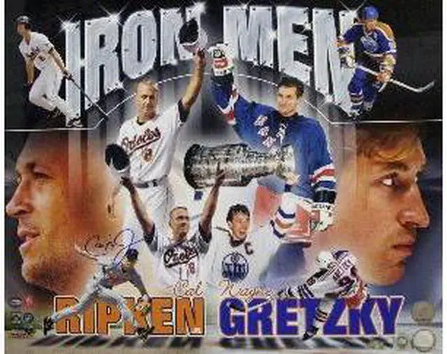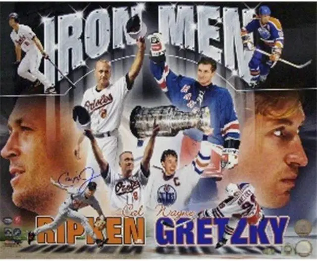 This 16x20 photo shows Cal Ripken, Jr and Wayne Gretzky, the two Iron Men of their respective sports, and is autographed by Cal Ripken, Jr. This rare 16x20 is signed by baseballs consecutive games record holder Cal Ripken Jr. (pictured with Gretzky). Official Ironclad Authentics Certificate of Authenticity and hologram, and MLB Authenticity hologram included with your order.