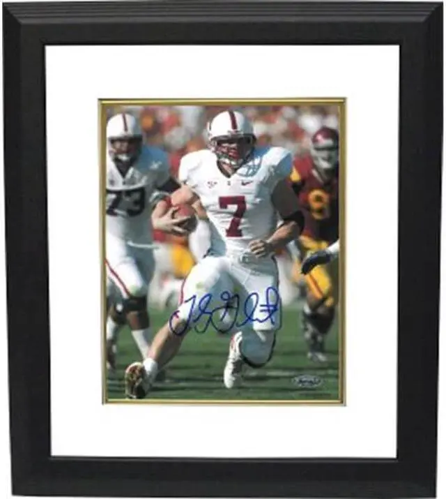 Toby Gerhart was a consensus All-American running back at Stanford and was drafted in the mid 2nd round of the 2010 NFL Draft by the Minnesota Vikings. He won the Doak Walker Award in 2009 and was also the runner-up for the 2009 Heisman Trophy. He had a breakout senior season in 2009, leading all running backs in the nation in rushing yards, touchdowns, and points scored, and setting several Pac 10 and school records. Toby Gerhart has hand autographed this Stanford Cardinal 8x10 Photo. Custom White Mat and Black Frame as shown. Tri Star Productions Hologram and Certificate of Authenticity.