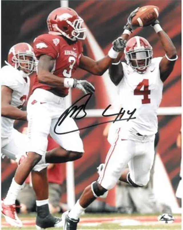 As a sophomore for the 2009 Alabama Crimson Tide football team, Mark Barron took over as a starter at safety and was second on Alabama's National Championship team with 74 tackles and an SEC leading seven interceptions and a touchdown. Mark Barron was named to the 2010 Jim Thorpe Award preseason watch list. Barron Finished the 2010 season with 77 tackles and three interceptions. He was named an FWAA All American for his stellar season. Barron is already widely considered a strong NFL prospect. Mark Barron has hand signed this Alabama Crimson Tide 8x10 Photo. Certificate of Authenticity from Athlon Sports. Private Signing 1/28/12, Huntsville, Alabama.