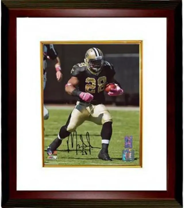 During his sophomore season in 2009 Mark Ingram won Alabama's first-ever Heisman Trophy, set the Crimson Tide's single-season rushing record with 1,658 yards, was voted to the AP All-America first-team and helped lead the Tide to an undefeated 14–0 season including a victory in the 2010 BCS National Championship Game. Mark Ingram has hand signed this New Orleans Saints 8X10 Photo. First Round Draft pick by the New Orleans Saints in 2011. Custom White Mat and Premium Mahogany Frame as shown. Ingram Hologram and Certificate of Authenticity from Athlon Sports.
