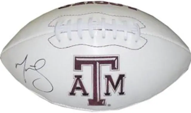 In his freshman season at Texas A&M University, he caught 18 passes for 162 yards and 3 touchdowns, earning freshman All-American honors from Sporting News. In his sophomore season, he was named one of eight semifinalists for the John Mackey Award, given annually to the nation's top tight end, after making 38 catches for 497 yards and three touchdowns. On October 28, 2006, he caught a career-high of 133 yards and two touchdowns on five catches against Baylor. He was named the Mackey Award Player of the Week after the game. He finished his sophomore season with All-Big 12 Second Team honors. In his junior season, he made 49 receptions for 587 yards and four touchdowns. After his junior season, an NFL committee indicated to Bennett that he would be a first or second-round pick in the NFL Draft, so Bennett decided to skip his senior season and declare early. Martellus Bennett has hand signed this Texas A&M Aggies Logo Football. MAB Hologram and Certificate of Authenticity from Athlon Sports.