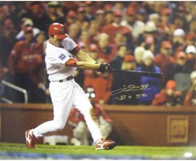 So Taguchi is a Japanese former outfielder. He played eight years in Major League Baseball with the St. Louis Cardinals, Philadelphia Phillies and Chicago Cubs, followed by a final two years in Japan with the Orix Buffaloes.Taguchi is the first Japanese National League player to win a World Series. Taguchi is also the first Japanese player to win two World Series with different teams, with the St. Louis Cardinals in 2006 and the Philadelphia Phillies in 2008. So Taguchi has hand signed this St. Louis Cardinals 16x20 Photo from the 2006 World Series (in English and Japanese). Leaf Authentics Hologram and Certificate of Authenticity from Athlon Sports.