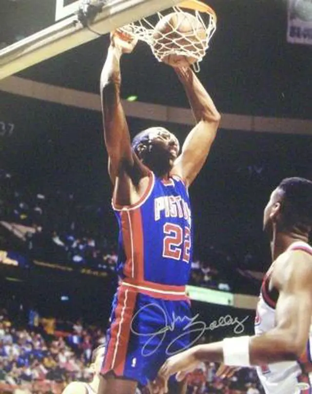 John Salley was drafted by the Detroit Pistons in the first round of the 1986 NBA Draft out of Georgia Tech. After joining the Pistons, he became close friends with Adrian Dantley, who taught him proper nutrition, how to exercise, and how to conduct himself off the court. In 1989 and 1990, he played on two Pistons championship teams. He is among the Pistons' all-time leaders in blocked shots. John Salley signed this Detroit Pistons 8x10 Photo. Leaf Authentics Hologram and Certificate of Authenticity from Athlon Sports.