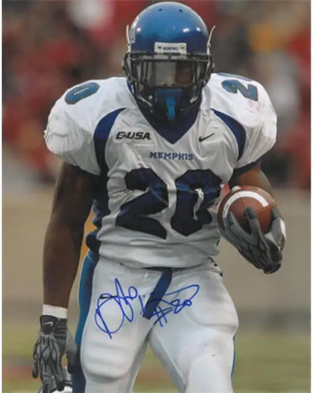 Deangelo Williams holds the NCAA records for most career all-purpose yards (7,573) and 100-yard rushing games (34). He also ranks fourth on the all-time NCAA rushing list with 6,026 yards, trailing only Ron Dayne, Ricky Williams, and Tony Dorsett. Williams was on the 2004 Pro Football Weekly All-America Team. Deangelo Williams has hand autographed this Memphis Tigers 16X20 Photo. Certificate of Authenticity from Athlon Sports.
