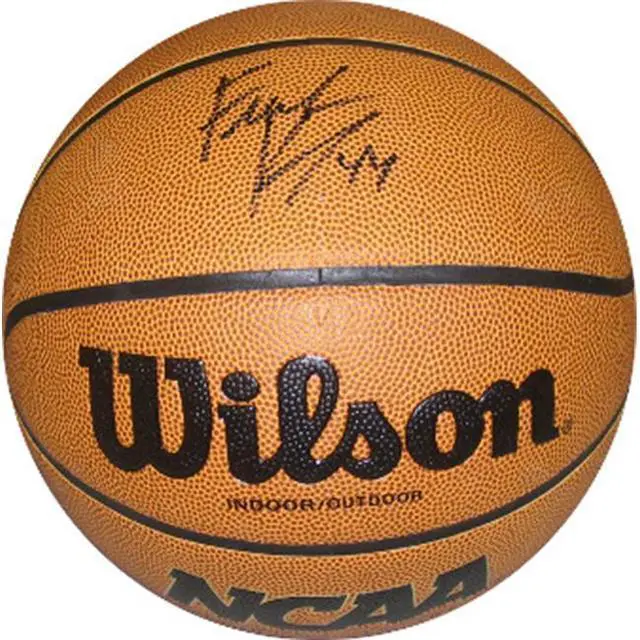 Ahead of the 2014 season Frank Kaminsky was named the Big Ten preseason player of the year. The Badgers were unanimously picked to win the Big Ten Championship. The Badgers ended up winning both the Big Ten regular season and the Big Ten tournament. Kaminsky was named consensus first-team All-American. On March 31, 2015 he was named the National Association of Basketball Coaches Player of the Year. On April 3 he was named Associated Press College Basketball Player of the Year, the first Wisconsin player to receive the award. He also received the Oscar Robertson Trophy as the United States Basketball Writers Association College Player of the Year. On April 5, he was named the Naismith College Player of the Year. On April 10, he won both the John R. Wooden Award and Kareem Abdul-Jabbar Center of the Year award. Frank Kaminsky has hand signed this NCAA Wilson Indoor/Outdoor Basketball. Schwartz Sports Hologram and Certificate of Authenticity from Athlon Sports.
