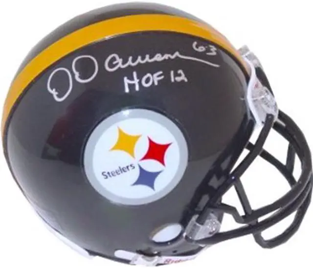 Dermontti Dawson was named to seven straight Pro Bowls from 1992 to 1998 and was a six-time AP First Team All-Pro. In 1993, he was named co-AFC Offensive Lineman of the Year by the NFLPA and in 1996 he was named the NFL Alumni’s Offensive Lineman of the Year. He played in 170 consecutive games, the second most in Steelers history. He was elected to the Pro Football Hall of Fame in 2012. Dermontti Dawson has hand signed this Pittsburgh Steelers Replica Mini Helmet and has added the inscription, "HOF 12." Leaf or MAB Hologram and Certificate of Authenticity from Athlon Sports.