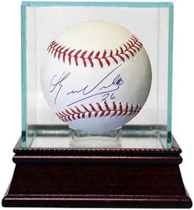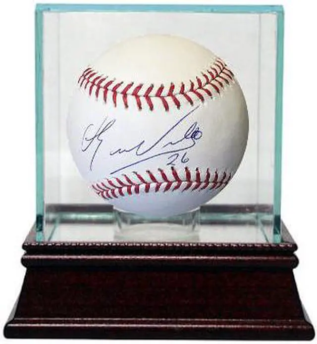 Eduardo Nunez was a non-drafted signee with the Yankees in 2004. Nunezwas called up to the majors for the first time on August 19, 2010. On August 21, Nunez recorded his first major league hit, a go-ahead RBI single into right field. Nunez hit his first career home run versus the Chicago White Sox on August 28, 2010. He also stole his first career base the same day. Nunez was named Yankees minor league player of the year for 2010. Eduardo Nunez has hand signed this Official Major League Baseball #26. Certificate of Authenticity from Athlon Sports. Glass Display Case shown IS included