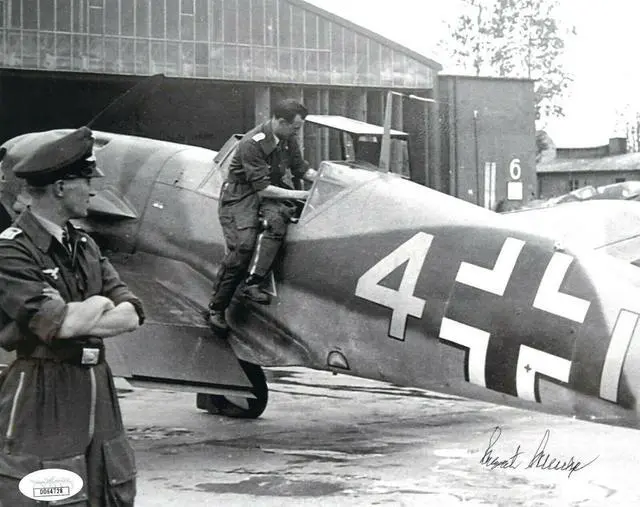 On September 16, 1944, he was shot down over the Russo-Finnish border. Rescued by German Mountain Troops, it took sometime to get back to his base, but when he arrived, his Commanding Officer pulled out a bottle and they celebrated his save return. Later he volunteered to fly daylight photo reconnaissance missions over Murmansk in a Bf-109. Kurt Schulze has hand signed this 8x10 Photo. JSA Hologram #DD64728 and Certificate of Authenticity.