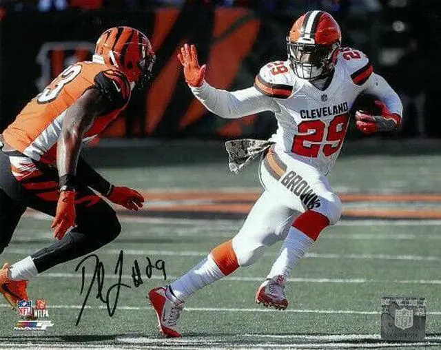 Duke Johnson is an American football running back for the Cleveland Browns of the National Football League (NFL). He was drafted by the Browns in the third round (77th overall) of the 2015 NFL draft. Duke Johnson has hand autographed this Cleveland Browns 8x10 Photo. Certificate of Authenticity from Athlon Sports Collectibles.