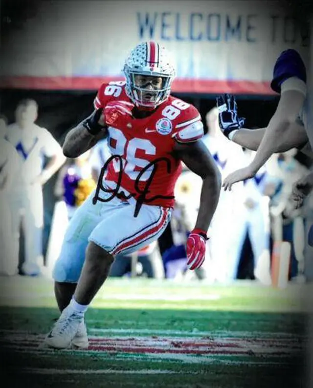 During his redshirt freshman season, Dre'Mont Jones joined Dan Wilkinson and Luke Fickell as the only freshmen defensive linemen to start 10 or more games in a season. By the end of the season, Jones racked up 51 total tackles, including 4 tackles for a loss. Projected first round pick Nick Bosa went down with an injury against TCU on September 15, leading Jones to take on a larger role on the defensive line. After the season, Jones decided to forego his senior year and enter the 2019 NFL Draft. Dre'Mont Jones has hand signed this Ohio State Buckeyes 8x10 Photo. Certificate of Authenticity from Athlon Sports Collectibles.