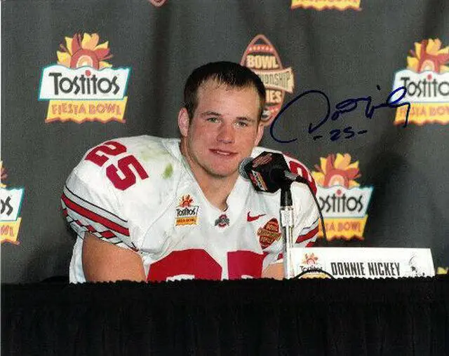 Donnie Nickey was a co-captain with Mike Doss on the 2002 NCAA National Championship team. Donnie Nickey has hand signed this 2002 Fiesta Bowl National Champs Ohio State Buckeyes 8x10 Photo #25. Certificate of Authenticity from Athlon Sports Collectibles.