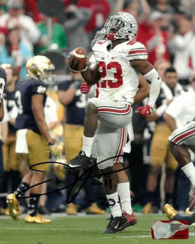 Following his verbal commitment to Ohio State in June 2011, Tyvis Powell accepted an athletic scholarship to play for coach Urban Meyer's Buckeyes in the fall of 2012.Powell began his collegiate career as a backup Safety. Powell would appear in all 14 games with five starts as a redshirt freshman in 2013, including a starting appearance at Safety in the Orange Bowl. He would conclude the season with 48 tackles and one interception. As a sophomore in 2014, he started all 15 games, recording 76 tackles and four interceptions. He was named the Defensive MVP of the 2015 College Football Playoff National Championship victory over Oregon Ducks after he had a game-high nine tackles. As a junior in 2015, Powell started all 13 games and had 71 tackles and three interceptions. After the season, he entered the 2016 NFL Draft. Tyvis Powell has hand signed this Ohio State Buckeyes 8x10 Photo #23. Certificate of Authenticity from Athlon Sports Collectibles.