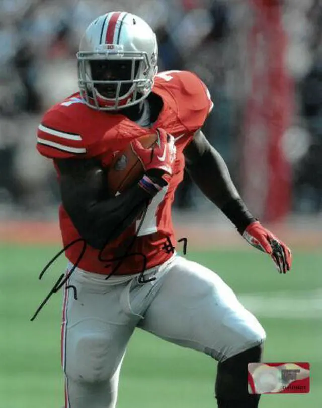Rod Smith accepted a football scholarship from Ohio State University as a highly rated recruit. As a redshirt freshman, he appeared in 10 games, opening the season against the University of Akron with 18 carries for 74 yards and one touchdown. As a senior he sill emerged as the team's goal line running back behind sophomore starter Elliott, posting 24 carries for 101 yards and 4 touchdowns, while also contributing on special teams. Rod Smith has hand signed this Ohio State Buckeyes 8x10 Photo #7. Certificate of Authenticity from Athlon Sports Collectibles.