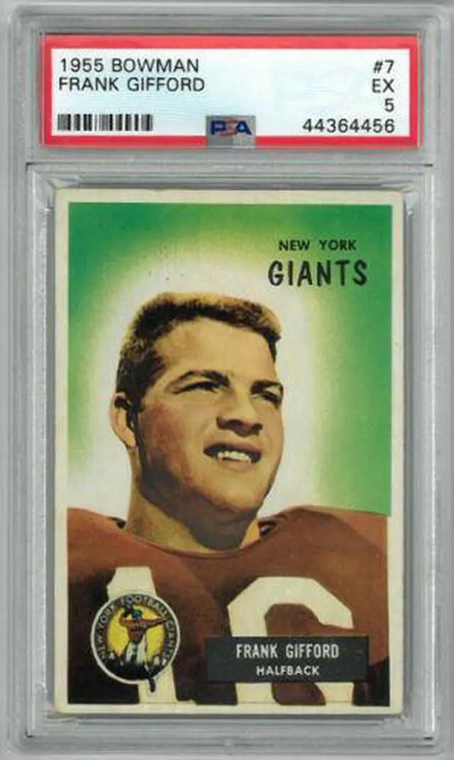 This is a Frank Gifford New York Giants 1955 Bowman Football Card #7- PSA Graded 5 Excellent. Image of actual item instock - as shown.