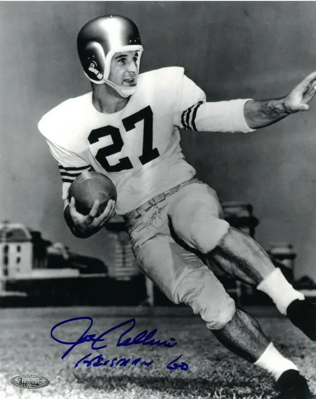 In 1957, Joe Bellino entered the United States Naval Academy in Annapolis, Maryland. He was an outstanding baseball player at Navy, but his legendary exploits occurred on the football field. In his senior year, he rushed for 834 yards, caught 15 passes for 264 yards and three touchdowns, threw two touchdown passes, averaged 47.1 yards as a punter, and returned kicks and punts. He won the 1960 Heisman Trophy by a wide margin, garnering the most votes in each of the five national voting regions. Joe Bellino has hand autographed this Navy Midshipmen Vintage B&W 8x10 Photo with Heisman 60 Inscription. Tri-Star Hologram and Certificate of Authenticity.