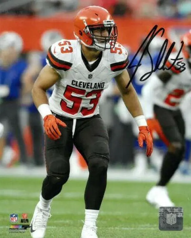 The Cleveland Browns selected Joe Schobert in the fourth round (99th overall) of the 2016 NFL Draft. He finished his rookie season with 28 combined tackles (19 solo), a half a sack, and a pass deflection in four starts and 16 games. Schobert started all 16 games in 2017 at middle linebacker, finishing tied for first in the NFL with 144 tackles. On January 16, 2018, he was named to his first Pro Bowl as a replacement for the injured Ryan Shazier. Joe Schobert has hand autographed this Cleveland Browns 8x10 Photo #53. Certificate of Authenticity from Athlon Sports Collectibles.