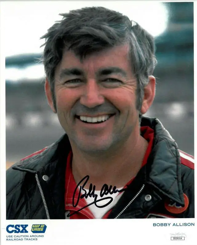Bobby Allison is a former NASCAR Winston Cup driver and was named one of NASCAR's 50 greatest drivers. Allison was elected to the International Motorsports Hall of Fame in 1993. Allison is one of eight drivers to have won what was then considered a career Grand Slam (an unofficial term) by winning the sport's four majors: the Daytona 500, Winston 500, Coca-Cola 600, and the Southern 500. Bobby Allison has hand signed this 8x10 Photo. JSA Hologram #DD39314 and JSA Certificate of Authenticity.