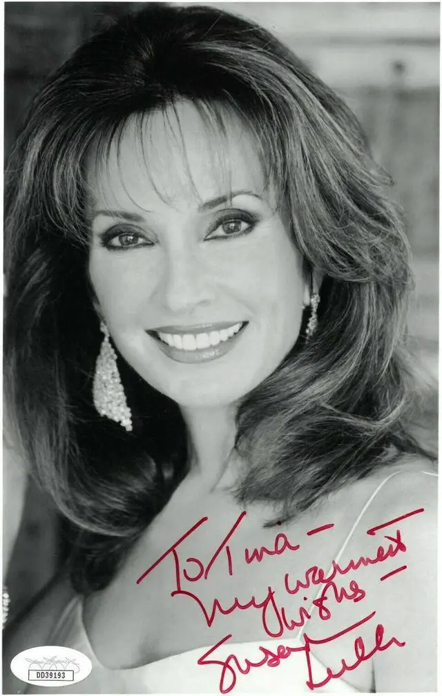Susan Lucci is an American actress, television host, author and entrepreneur, best known for portraying Erica Kane on the ABC daytime drama All My Children from 1970 to 2011. The character is considered an icon,and Lucci has been called "Daytime's Leading Lady" by TV Guide, with The New York Times and the Los Angeles Times citing her as the highest-paid actor in daytime television. Susan Lucci has hand signed this 7x9 Photo with To Tina My Warmest Wishes inscription. JSA Hologram #DD39193 and Certificate of Authenticity.