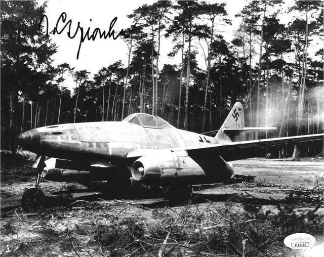Jorg Czypionka was a flight instructor during most of the war. He did see combat as an ME262 jet pilot at the end of the war. He had one victory to his credit. After the war, he moved to the United States and became an American citizen. He is an honored member of the Old Bold Pilots, Oceanside, California, where he and other World War II German pilots are treated as brothers by their former American opponents. Jorg Czypionka has hand signed this Vintage B&W 8x10 Photo. JSA Hologram #EE62703 and Certificate of Authenticity.