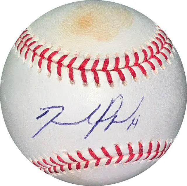 David Price is an American professional baseball pitcher for the Toronto Blue Jays of Major League Baseball (MLB). Price was selected first overall in the 2007 Major League Baseball Draft by the Tampa Bay Rays and made his major league debut in September 2008. He also played a year for the Detroit Tigers, after a July 2014 deadline deal. Price became a full-time starting pitcher in 2009. In his second full season, he was named the American League starter for the 2010 All-Star Game and finished second in the voting for the 2010 Cy Young Award. He won his first Cy Young Award in 2012 after a tight race. David Price has hand signed this Rawlings Official Major League Baseball (Selig Commissioner). JSA Hologram #EE63481 and JSA Certificate of Authenticity. Ball is toned, sold as is, no returns.