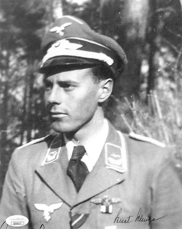 Kurt Schulze was born in Germany in 1921. After graduating from High School in Berlin, Kurt entered German military service in 1939 as a Cadet with the Air Signals Corps. In September of 1943, he received his wings as a pilot and in March 1944 started fighter pilot training. In July of 1944 he was assigned to *JG-5 in the Petsamo region of Finland, 300 miles north of the Arctic Circle at the Barents Sea and just 60 miles west of Murmansk, Russia. While there, he flew the Messerschmitt Bf-109 on 65 missions and was credited with three victories. On September 16,1944, he was shot down over the Russo-Finnish border. Rescued by German Mountain Troops, it took sometime to get back to his base, but when he arrived, his Commanding Officer pulled out a bottle and they celebrated his save return. Later he volunteered to fly daylight photo reconnaissance missions over Murmansk in a Bf-109. Kurt Schulze has hand signed this 8x10 Photo. JSA Hologram #EE63177 and JSA Certificate of Authenticity.