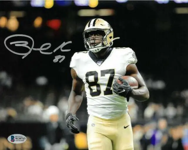Jared Cook made his Saints debut in the 2019 season-opener against the Houston Texans, catching two passes for 37 yards in the narrow 30-28 victory. In week 16 against the Tennessee Titans, Cook caught 3 passes for 84 yards and 2 touchdowns during the 38–28 win. Jared Cook has hand signed this New Orelans Saints 8x10 Photo #87. Beckett Witnessed Hologram and Beckett Certificate of Authenticity.