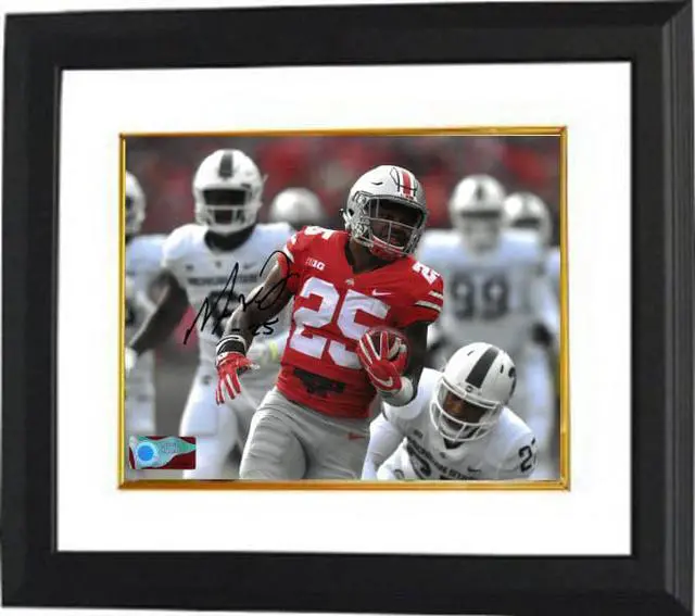 After redshirting his first year in 2015, Mike Weber took over as the starting running back role in 2016, replacing Ezekiel Elliott who had graduated. At the end of the season, he was named the Thompson–Randle El Freshman of the Year and second-team All-Big Ten. On December 16, 2018, Weber announced that he would forgo his final year of eligibility and declared for the 2019 NFL Draft. Mike Weber has hand autographed this Ohio State Buckeyes NCAA Licensed 8x10 Photo with #25. Certificate of Authenticity from Athlon Sports Collectibles. Custom White Mat and Premium Black Frame as shown.