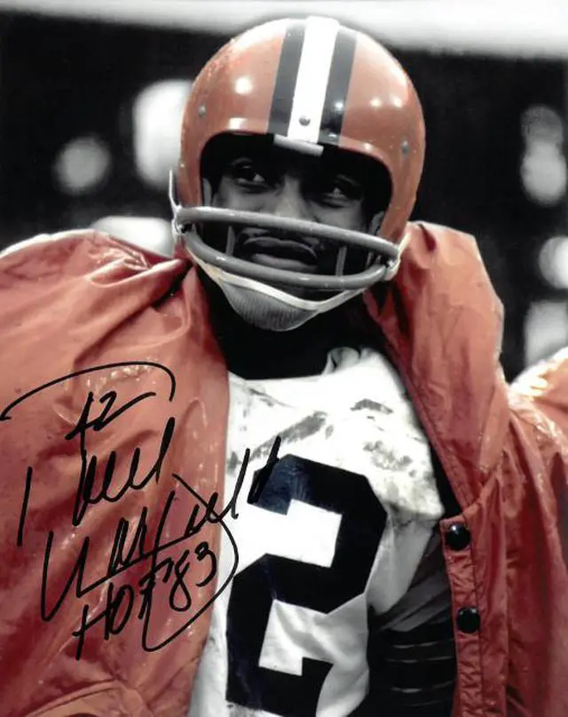 Paul Warfield was in the Pro Bowl eight times, and was named All League six times. In 1968 he caught 50 passes and for the only time in his career gained over 1, 000 yards in receiving (1, 067 yards). That year he scored 12 touchdowns as the Browns reached the NFL Championship for the third time in the 1960s. Paul Warfield has hand autographed this Cleveland Browns 8x10 Photo #42 HOF 83 inscription. Certificate of Authenticity from Athlon Sports Collectibles.