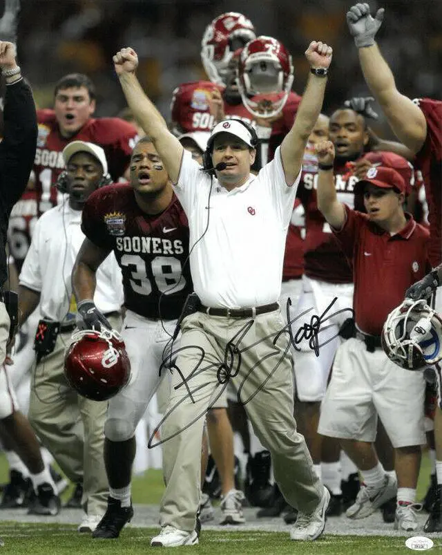 Bob Stoops was the head football coach at the University of Oklahoma from 1999 until he announced his retirement June 7, 2017. During the 2000 season, Stoops led the Sooners to an Orange Bowl victory and a national championship. Stoops was awarded the Paul "Bear" Bryant Award in 2000 and the Walter Camp Coach of the Year Award in 2000 and 2003. Bob Stoops has hand signed this Oklahoma Sooners 16x20 Photo. JSA Authentication Sticker & JSA Certificate of Authenticity