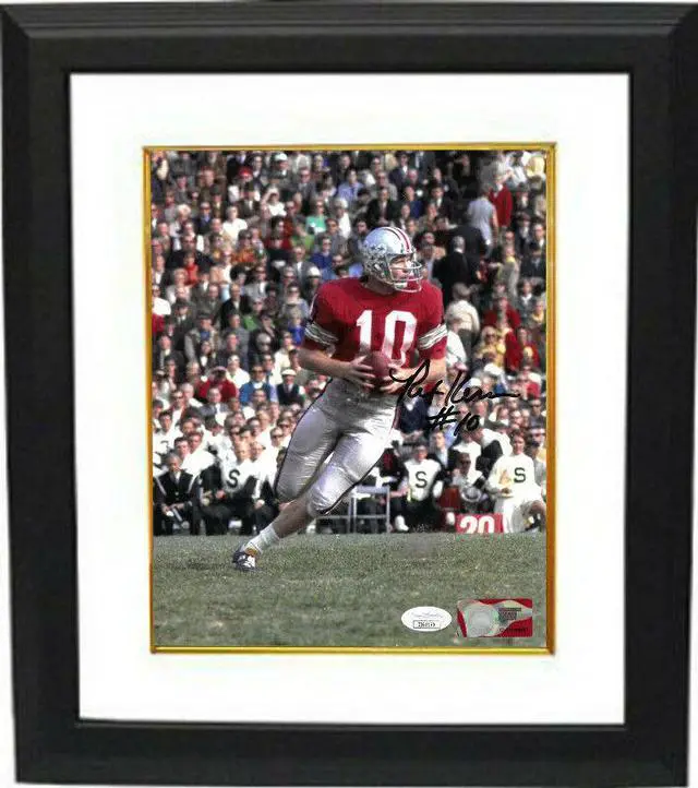 Rex Kern was the leader of the Buckeyes and guided them to an undefeated season and a consensus national championship in 1968. In 1969 Ohio State finished as Big Ten co-champions with Michigan and Kern was third in balloting for the 1969 Heisman Trophy. He was also named a first-team All-American. Kern was elected to the Ohio State Varsity O Hall of Fame in 1978, was selected to the Ohio State Football All-Century Team in 2000, and the College Football Hall of Fame in 2007. Rex Kern has hand autographed this Ohio State Buckeyes NCAA Licensed 8x10 Photo #10.