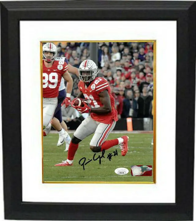 As a sophomore in 2016, Parris Campbell had 13 receptions for 121 yards and added 21 kick returns for 584 yards. As a junior in 2017, Campbell had 40 receptions for 584 yards and three touchdowns. Parris Campbell has hand autographed this Ohio State Buckeyes NCAA Licensed 8x10 Photo #21. JSA Authentication Sticker & JSA Certificate of Authenticity. Custom White Mat and Premium Black Color Framed as shown.