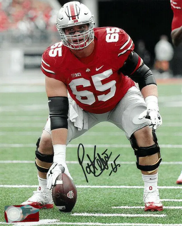 Pat Elflein was one of only two starters returning in 2015 and served as a captain for the 2016 season, his senior season in which he won the Rimington Trophy and was a finalist for the Outland Trophy. He was a first-team All-Big Ten in each of his final three seasons. Pat Elflein has hand autographed this Ohio State Buckeyes NCAA Licensed 8x10 Photo #65. Certificate of Authenticity from Athlon Sports Collectibles.