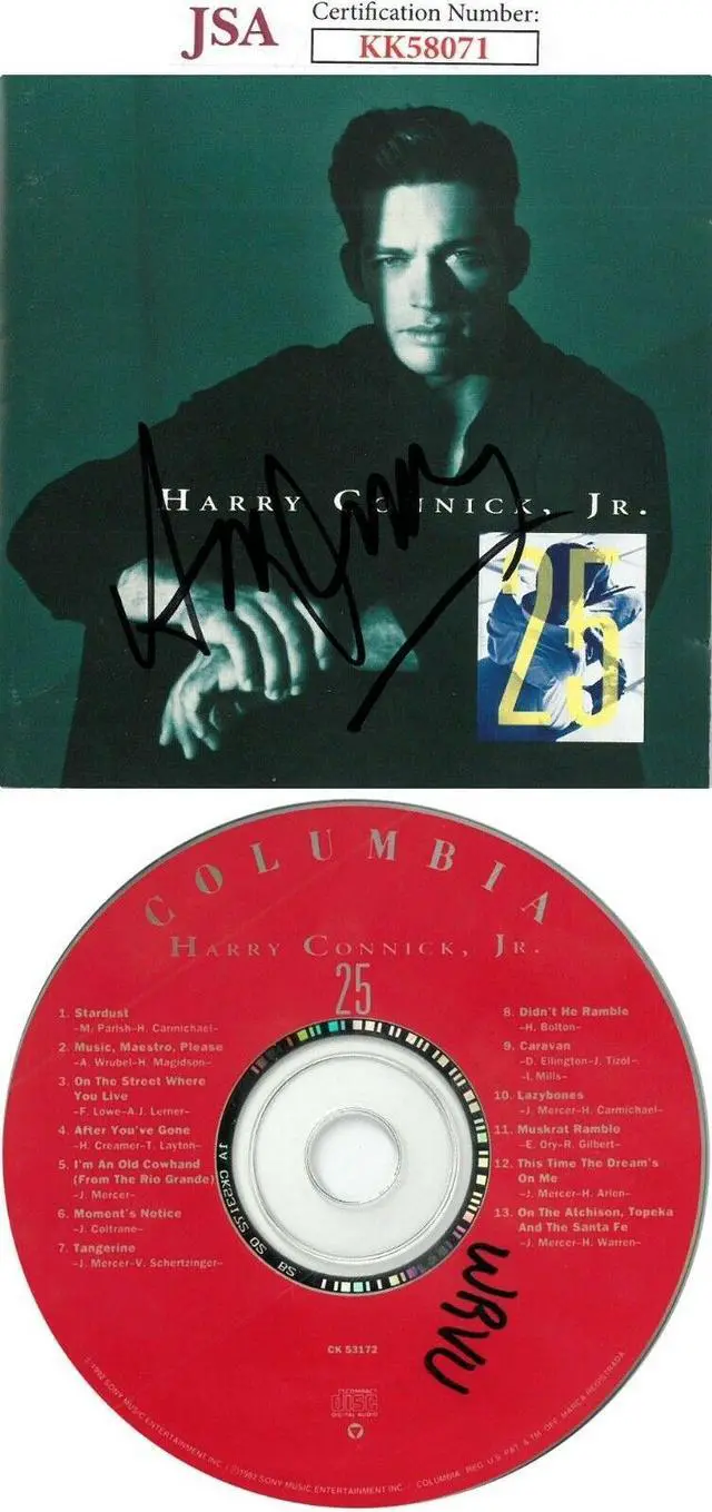 Harry Connick Jr. is an American singer, pianist, composer, actor, and television host. He has sold over 28 million albums worldwide. Connick is ranked among the top 60 best-selling male artists in the United States by the Recording Industry Association of America, with 16 million in certified sales. He has had seven top 20 US albums, and ten number-one US jazz albums, earning more number-one albums than any other artist in US jazz chart history. Harry Connick Jr. has hand signed this 1992 "25" Album Cover w/ CD & Case.
