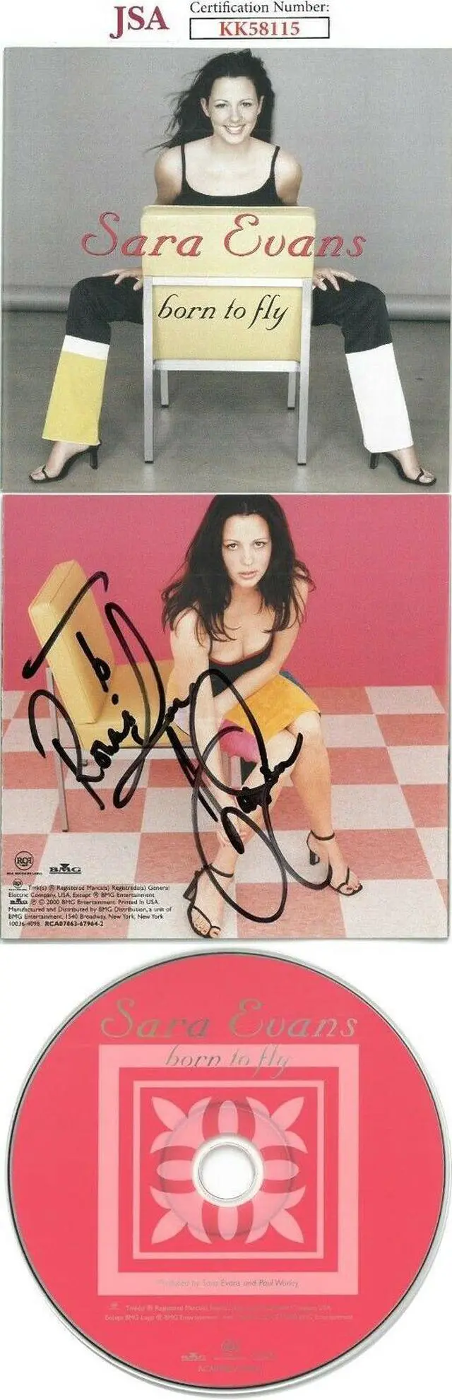 Sara Evans is an American country music singer and songwriter. Evans has released eight studio albums. She has charted more than 20 singles on the US Billboard Hot Country Songs charts. Evans has also won one award each from Billboard, the Academy of Country Music, the Country Music Association, Broadcast Music Incorporated (BMI), and a Dove Award. Sara Evans has hand signed this 2000 Born To Fly Album Back Cover w/ CD & Case with To Ronnie inscription.