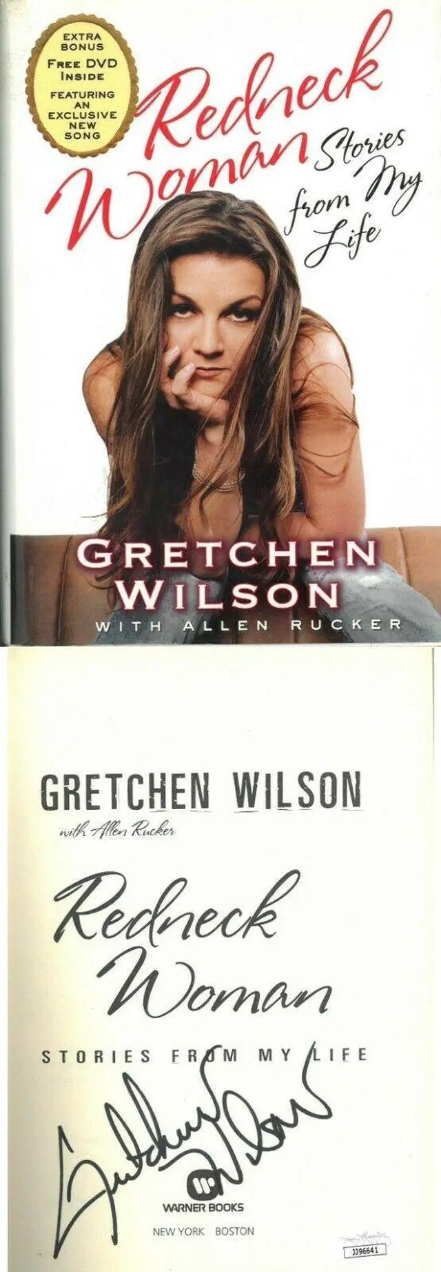 Gretchen Wilson has hand signed this 2006 Redneck Woman Hardcover Book. She signed the inside title page as shown. JSA Authentication Sticker #JJ96641 and JSA Certificate of Authenticity. Minor Dust Jacket Wear/Handling/condition as shown
