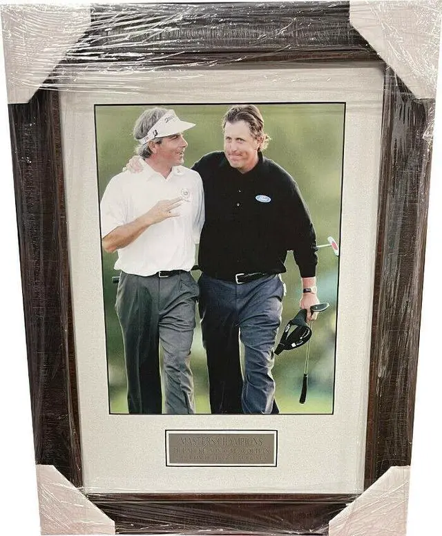 Phil Mickelson has won three major championships and reached a career high world ranking of 2nd in multiple years. He is nicknamed "Lefty" for his left-handed swing, even though he is otherwise right-handed. Fred Couples is a former World No. 1, he has won numerous events, most notably the Masters Tournament in 1992. This is a 11x14 unsigned 2006 Masters photo of Phil Mickelson and Fred Couples. Custom Burl Premium Framing, matting & nameplate.