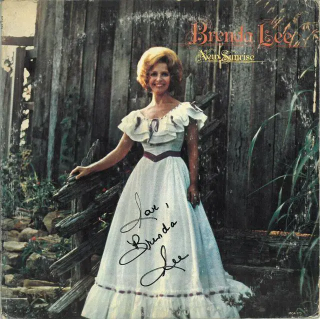 Brenda Lee is an American performer and the top-charting solo female vocalist of the 1960s. She sang rockabilly, pop and country music, and had 47 US chart hits during the 1960s, and is ranked fourth in that decade, surpassed only by Elvis Presley, the Beatles and Ray Charles. She is a member of the Rock and Roll, Country Music and Rockabilly Halls of Fame. Brenda Lee has hand signed this 1973 New Sunrise Album Cover/LP/Vinyl/Record w/ Love inscription. JSA Authentication Sticker #JJ96540 with JSA Certificate of Authenticity. Vinyl records ARE INCLUDED with the signed album cover.