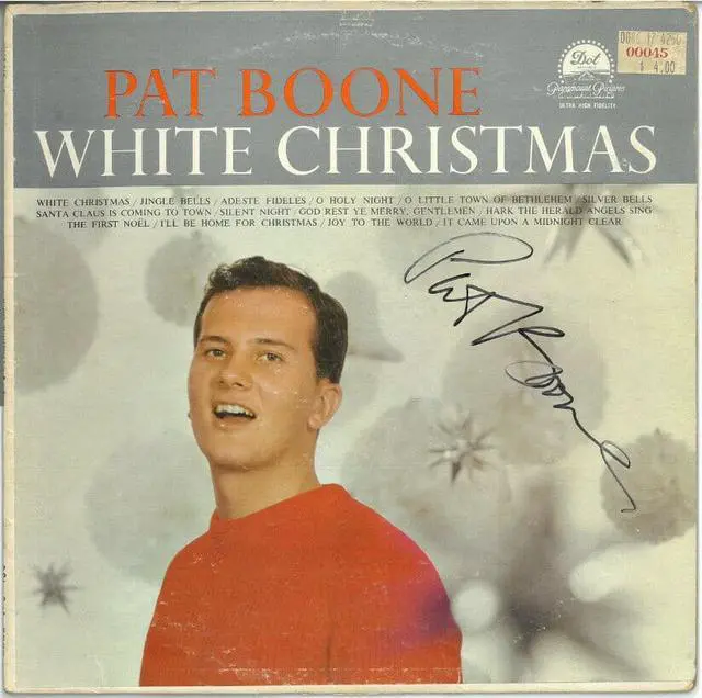Pat Boone is an American singer, composer, actor, writer, television personality, motivational speaker, and spokesman. He was a successful pop singer in the United States during the 1950s and early 1960s. He sold more than 45 million records, had 38 top-40 hits, and appeared in more than 12 Hollywood films. Pat Boone has hand signed this 1959 White Christmas Album Cover.