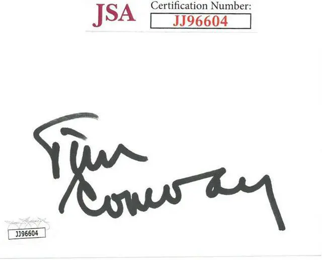 Tim Conway is an American actor, writer, director, and comedian. He portrayed the inept Ensign Parker in the 1960s World War II situation comedy McHale's Navy, co-starred on the 1970s variety and sketch comedy program The Carol Burnett Show, starred as the title character in the Dorf series of comedy films, and provided the voice of Barnacle Boy in the animated series SpongeBob SquarePants. Tim Conway has hand signed this 3X5 Index Card. JSA Authentication Sticker & Certificate of Authenticity #JJ96604. Item instock as shown