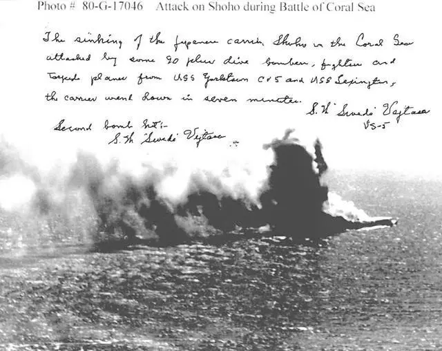 Stanley W. "Swede" Vejtasa was a United States Navy career officer and World War II flying ace. During the Battle of the Santa Cruz Islands, he shot down seven Japanese aircraft on 26 October 1942, becoming an "ace in a day". Stanley W. "Swede" Vejtasa has hand autographed this 8x10