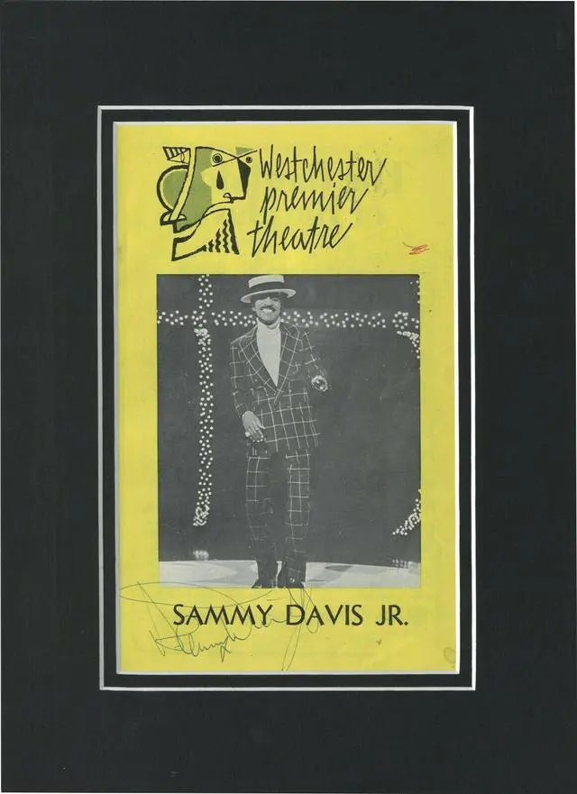 Sammy Davis Jr. was an American singer, dancer, actor, vaudevillian and comedian whom critic Randy Blaser called "the greatest entertainer ever to grace a stage in these United States. " Davis’s popularity helped break the race barrier of the segregated entertainment industry. Sammy Davis, Jr. has hand signed this 1975 Westchester Premier Theatre Playbill Matted to overall size 9x 12.5.