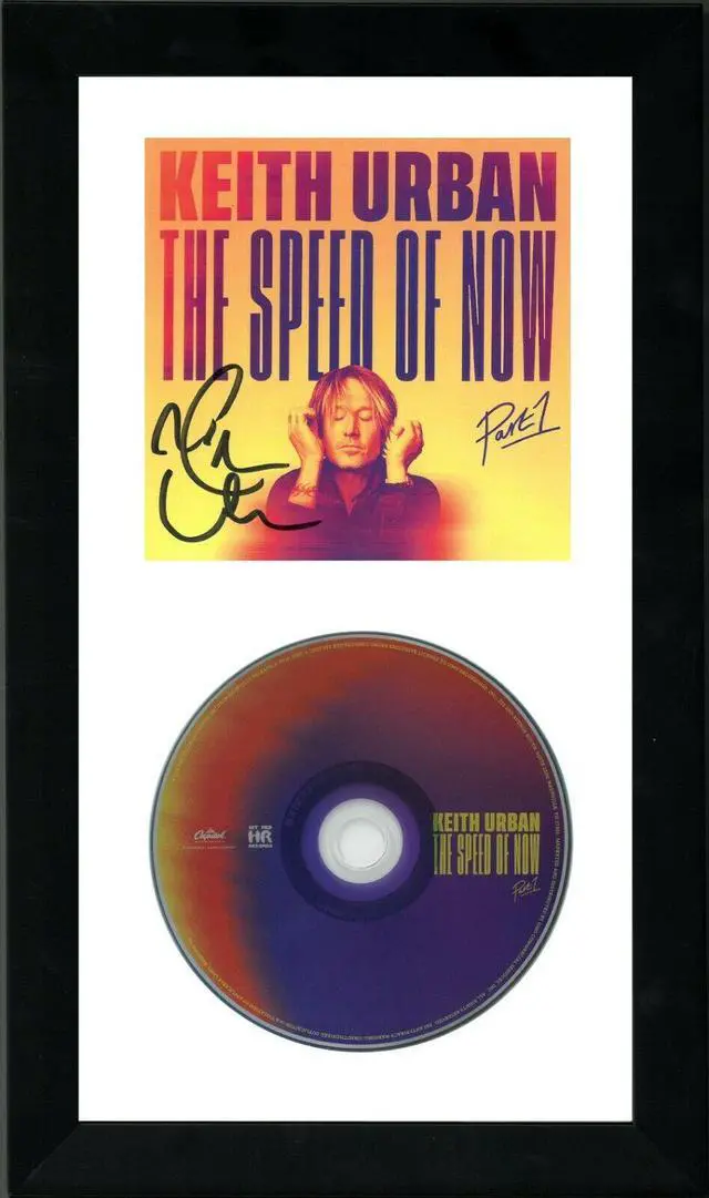 Keith Urban is an Australian singer, songwriter and record producer. Urban has released a total of eleven studio albums. He has charted 37 singles on the US Hot Country Songs chart, 18 of which went to number one. Keith Urban has hand signed this 2020 The Speed of Now Part 1 Album Cover w/ CD & Case. JSA Authentication Sticker #JJ96817 and JSA Certificate of Authenticity. Custom White Mat and Black Frame as shown to overall size 6.5 inch x 12 inch. Handling/condition as shown.