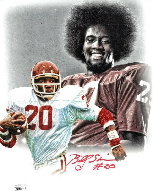 Billy Sims has hand signed this Oklahoma Sooners 8x10 Photo #20. JSA Witnessed Authentication Sticker and Certificate of Authenticity