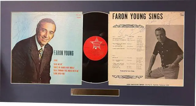 The song peaked at number 2 on the Billboard Hot Country Singles chart. Faron Young signed 1972 Sings Wine Me Up Album Cover/LP Vinyl Record Matted (17x32) plus additional signatures. Certificate of Authenticity from Athlon Sports Collectibles