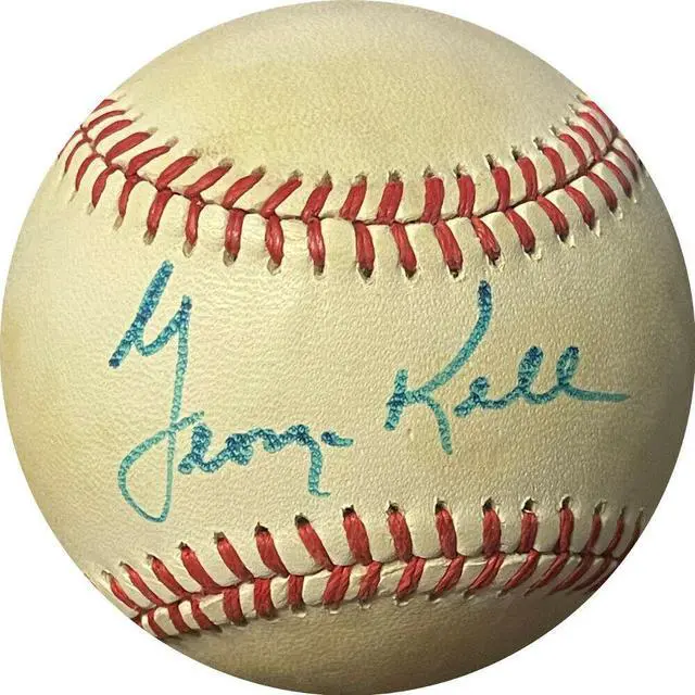 George Kell has hand signed this RONL Rawlings Official National League Baseball (Bart Giamatti President). Certificate of Authenticity from Athlon Sports Collectibles. Toned, sold as is, no returns.