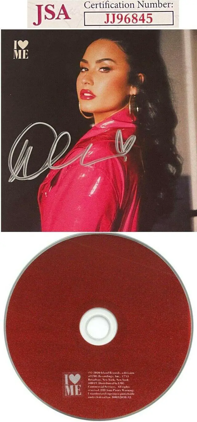 Demi Lovato is an American singer and actress. As of 2017, Billboard reported that Lovato has sold over two million albums and 20 million singles in the US. She is an advocate for several social causes such as gender, racial, and LGBT rights. Demi Lovato has hand signed this 2020 I Love Me Album Cover w/ CD & Case. JSA Authentication Sticker #JJ96845 and and JSA Certificate of Authenticity. Handling/condition as shown.