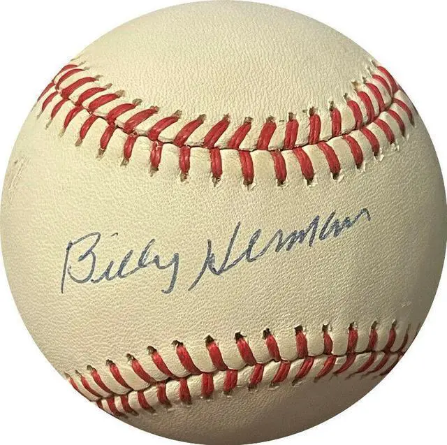 Billy Herman was an American second baseman in Major League Baseball (MLB) during the 1930s and 1940s. He was known for his stellar defense and consistent batting. He still holds many National League (NL) defensive records for second basemen. Billy Herman has hand signed this RONL Rawlings Official National League Baseball (Bart Giamatti President). Certificate of Authenticity from Athlon Sports Collectibles. Minor scuff, sold as is, no returns.