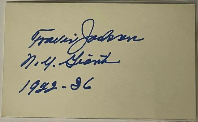 Travis Jackson was an American baseball shortstop. In Major League Baseball (MLB), Jackson played for the New York Giants from 1922 through 1936, winning the 1933 World Series, and representing the Giants in the MLB All-Star in 1934. Jackson was inducted into the National Baseball Hall of Fame in 1982. Travis Jackson has hand signed this 3x5 Index Card with NY Giants 1922-26 inscription. Certificate of Authenticity from Athlon Sports Collectibles.